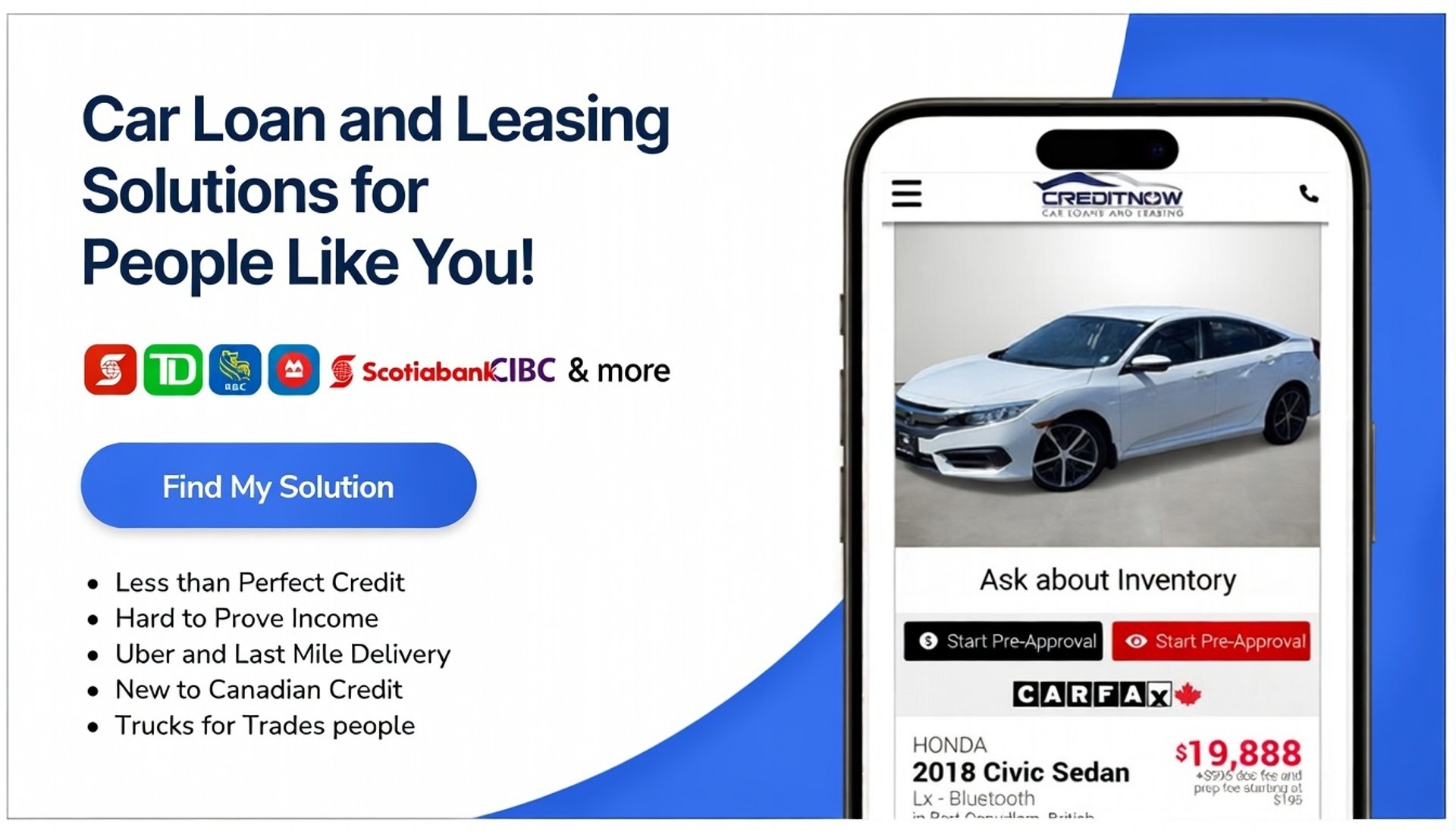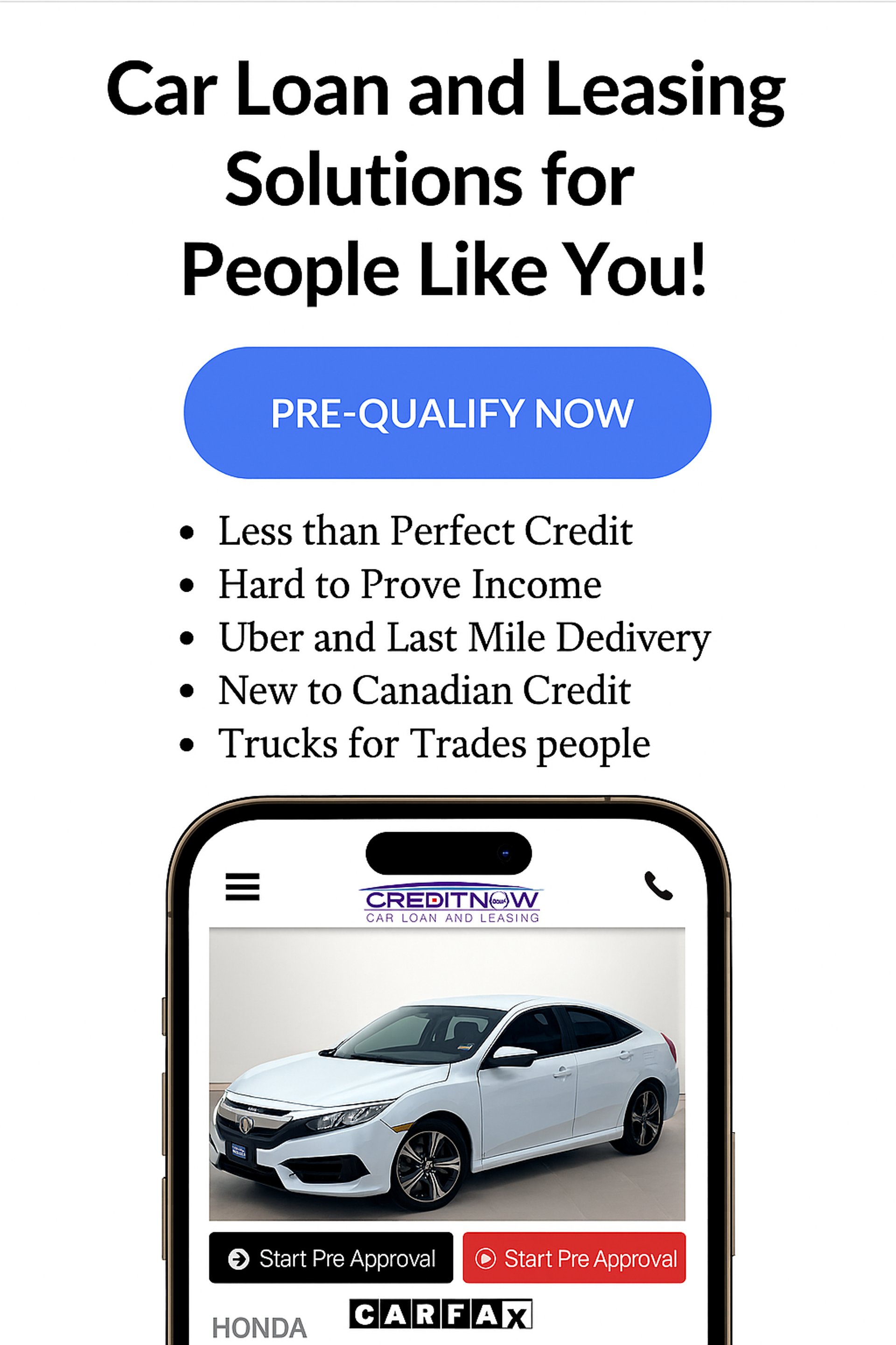 If you're new to Canada with little to no credit history, we have an exclusive in-house lease-to-own program. This program provides an affordable and convenient alternative to renting a car, relying on Uber, or solely depending on public transit. We believe that everyone deserves the opportunity to own a vehicle, regardless of their credit situation.